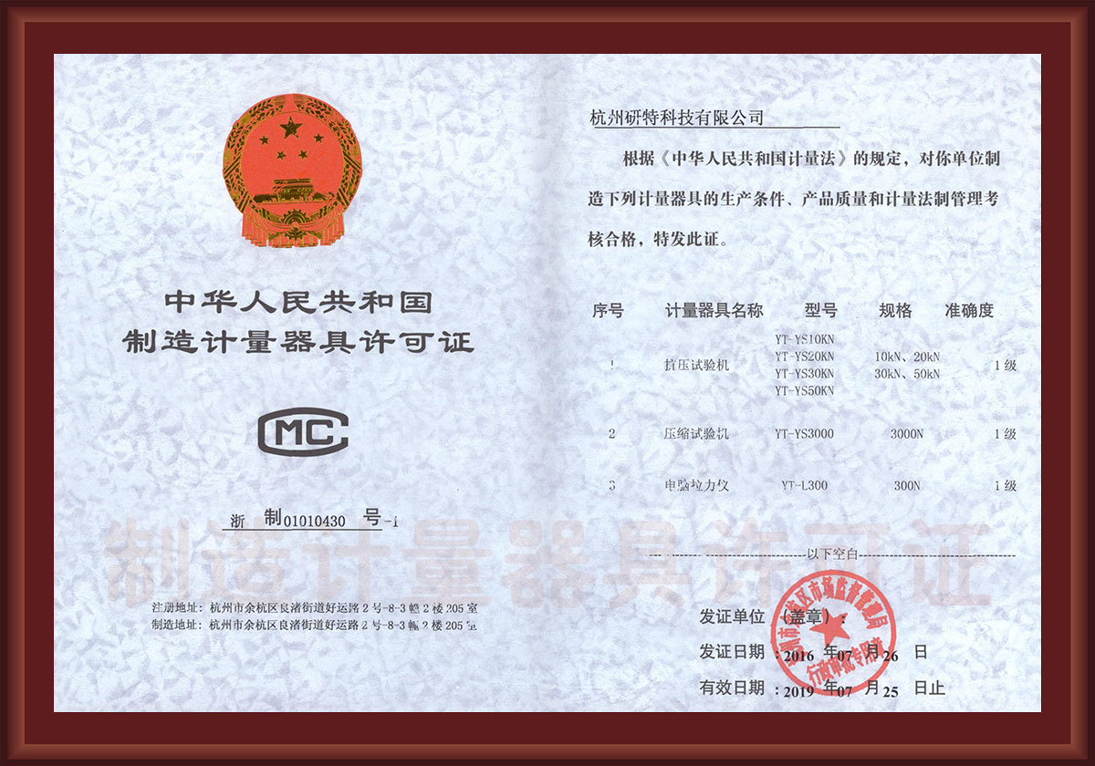• 中华人民共和国制造计量器具许可证