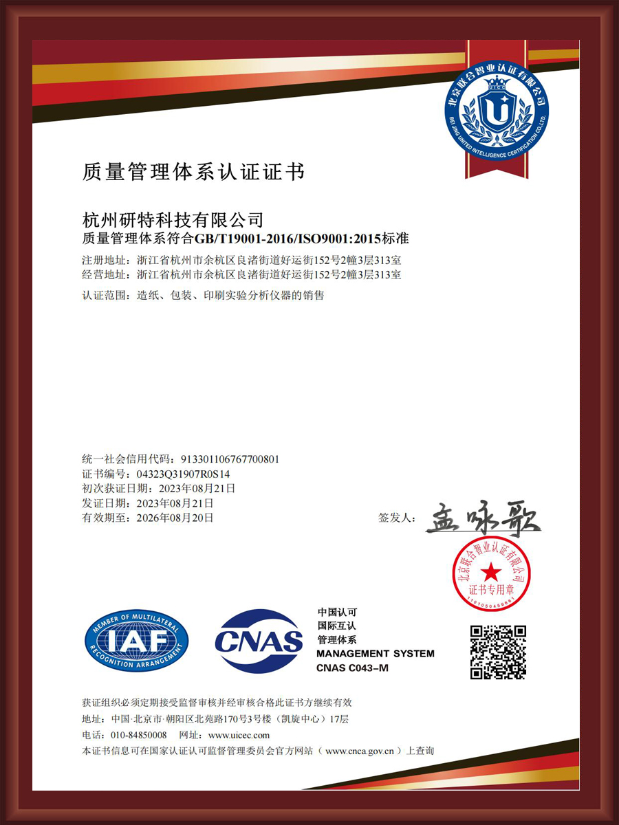• 质量管理体系认证证书中文2023-2026